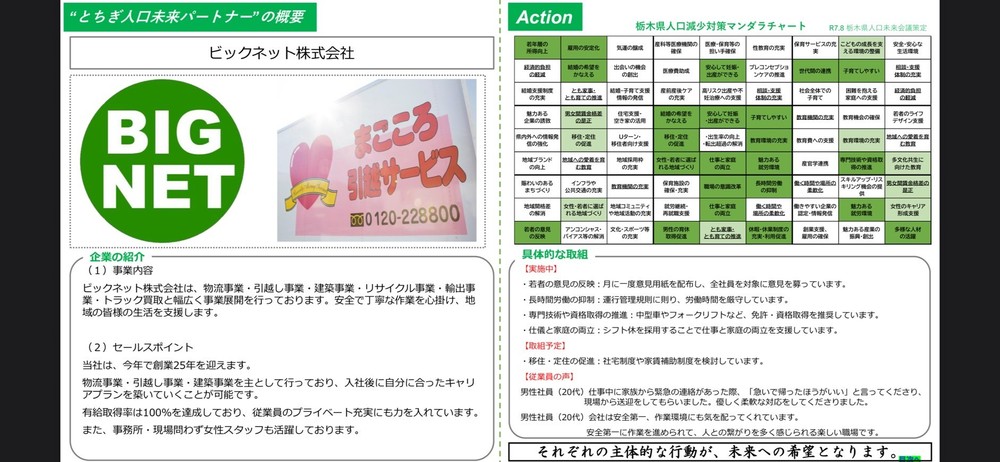 2026.04.02 栃木人口未来パートナーズへ加入いたしました。 いつもお世話になっております。 この度、当社では栃木県の人口減少対策として、県で行っている取り組みにご協力させて頂きました! 栃木県人口未来パートナーズには栃木県の魅力ある企業が多数掲載されています。 当社としましても、子育てがしやすい環境や魅力ある就労環境などを整えていき、栃木県の発展に少しでも貢献できればと思っております。 back